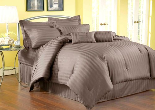 @@ 7Pcs King Stripe 500TC Cotton Comforter Set Chocolate ...